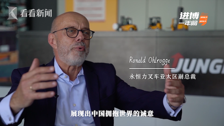 叉车制造商永恒力在首届进博会上展示的展品窄巷道叉车,帮助广东的陶瓷企业解决了降低堆垛损耗的难题。