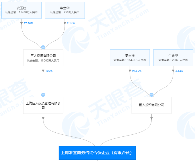 天眼查显示,上海准基穿透至上层实控人为史玉柱,也就是说史玉柱自掏腰包接盘了这部分股权。