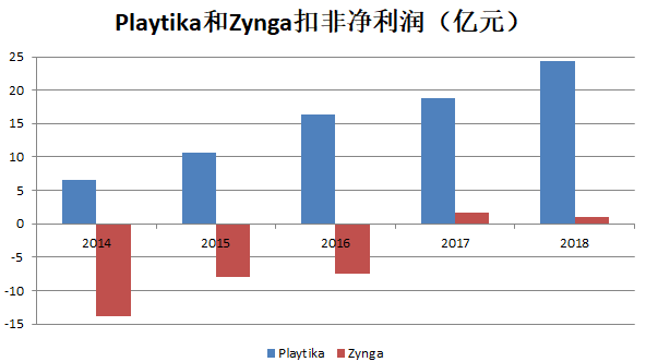 而在盈利能力方面,Playtika更是把其竞争对手Zynga远远甩在身后,其扣非净利润从2014年的6.5亿元增长至2018年的24.3亿元,复合增长率为39%。