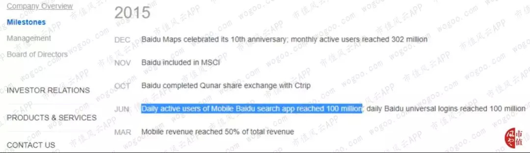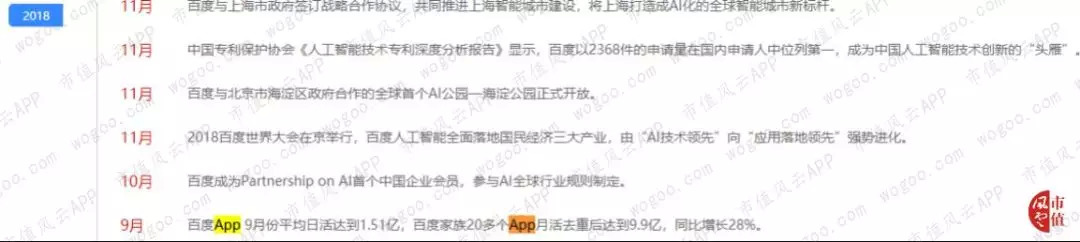 这块儿业务也是最近两年公司最有活力的部分,几乎占满了“百度大事记”的时间轴。