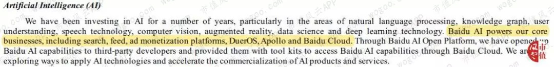 2016年,公司财报中出现了详尽的AI段落化叙述:百度AI驱动着公司的核心商业,包括搜索、推送、广告变现等。