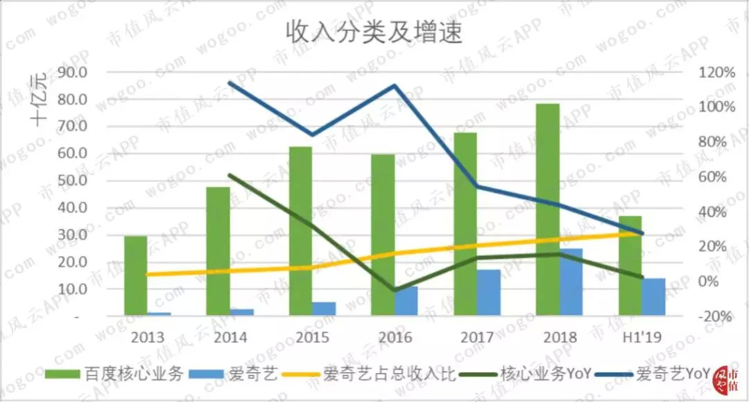 2018年,百度核心业务收入783亿元,爱奇艺250亿元,合计1023亿元,首超千亿。