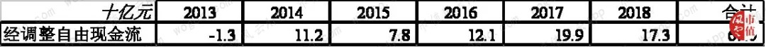 风云君计算的过去6年间,公司的经调整自由现金流为670亿元,调整项主要在对外投资,除了固定资产和无形资产的净开支这块儿,还有正常的商业并购及出售。