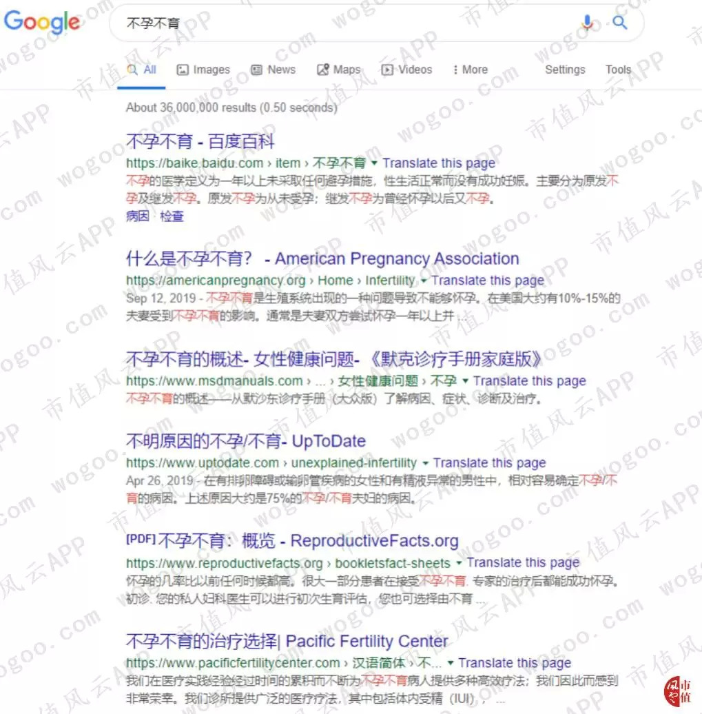 风云君一想,现在的百度搜索那可是各种AI加持,何不随手一试,看看和谷歌的差别呢?忽然脑海中想到10年前看地方电视台时经常出现的主题——“不孕不育”。