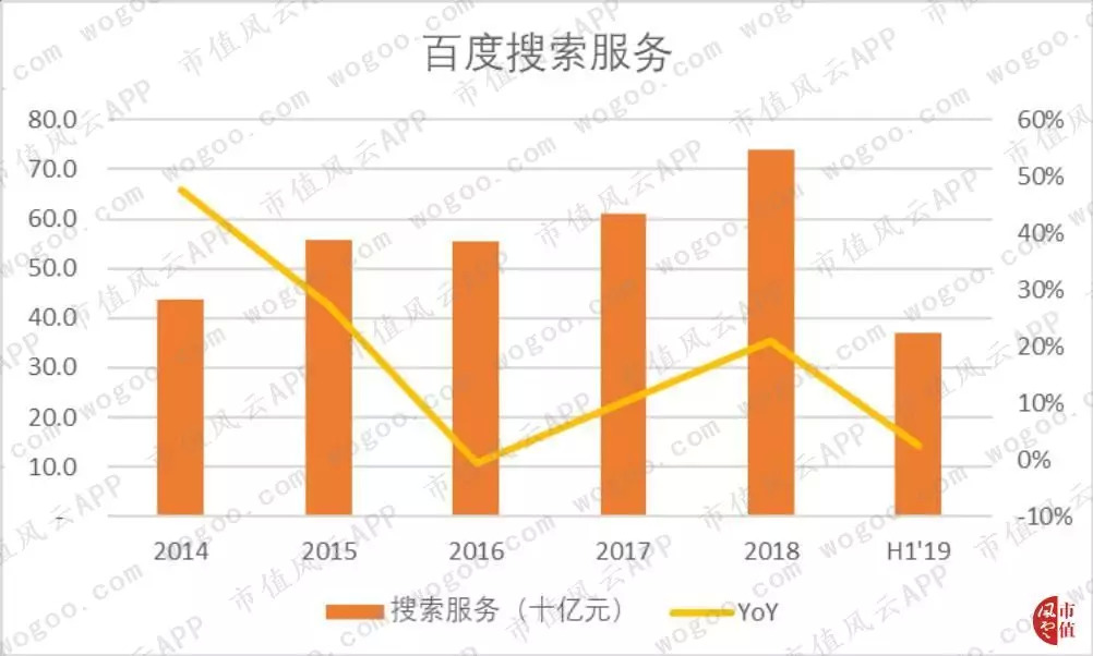 然而颇为出人意料的是,2019年上半年,搜索业务增速却出现了断崖式下跌,仅为2%,而单就二季度来说,更是同比下降了2%。