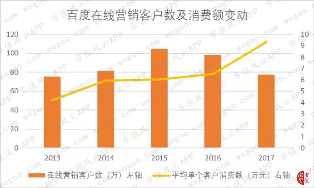 2017年,公司披露活跃线上营销客户数从2016年的98.2万下降至77.5万,而单个客户收费从2016年的6.53万增长到2017年的9.35万元。