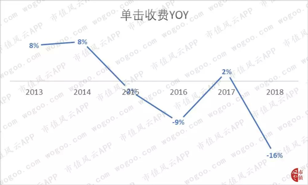 实质上,更令长期代客泊车的风云君惊讶的是,从2015年开始,公司的广告单击收费就处在下行通道,以降价为主。