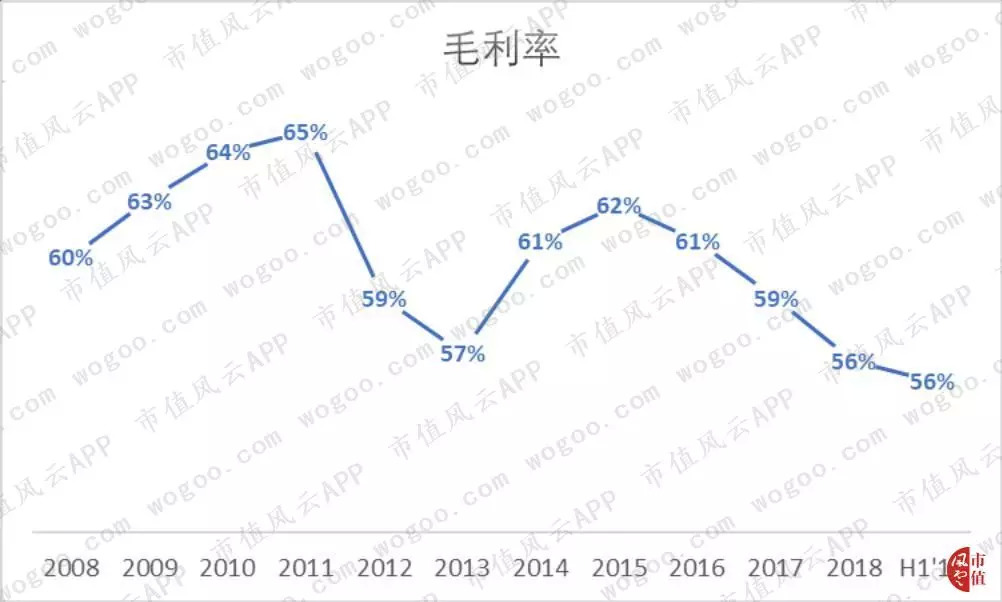 但是,2019年上半年,毛利率大降14个百分点,仅为55%,值得关注。