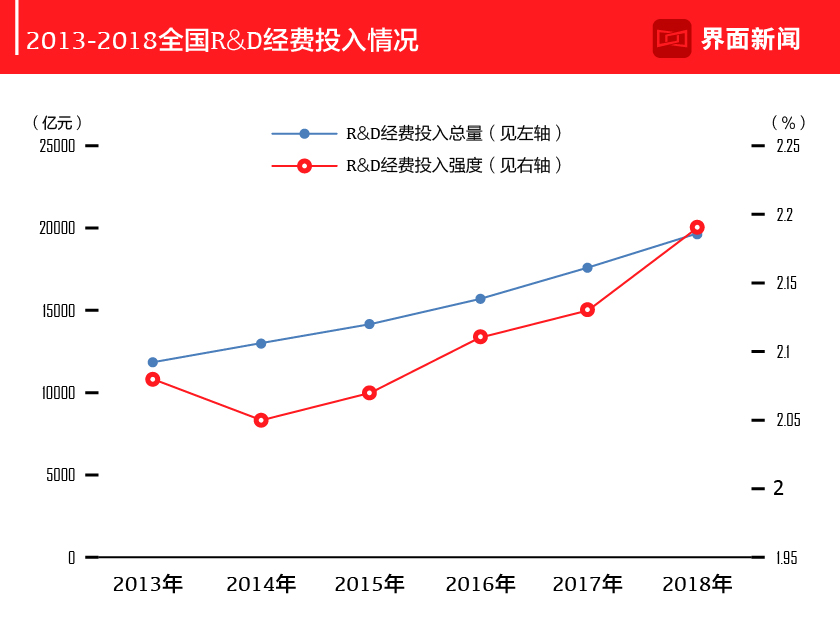 2017年习近平总书记在党的十九大报告中指出,创新是引领发展的第一动力,是建设现代化经济体系的战略支撑。据国家统计局数据显示,2018年我国的R&D经费投入总量达到19677.9亿元,R&D经费投入强度为2.19%,已经连续五年超过2%,推进了建设创新型国家的脚步。