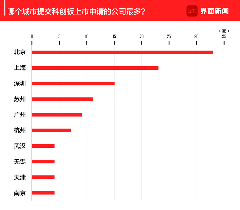 从创新主体来看,今年我们除了对各个城市高新技术企业的数量进行统计之外,提交科创板上市申请的公司和独角兽企业的数量也纳入了衡量指标。2019年6月,科创板正式开板,新板块的出现不但可以提升服务科技创新企业能力,还可以增强市场包容性。据上交所官网数据显示,截至2019年10月23日,共有165家公司提交科创板上市申请,其中有55家公司已经注册生效,34家公司已上市成功。