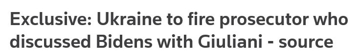 【乌克兰将解雇与特朗普律师讨论拜登案的检察官】据消息人士透露,乌克兰计划解雇负责调查拜登儿子任职公司的检察官,此人是美国总统特朗普被弹劾调查事件中的核心人物。