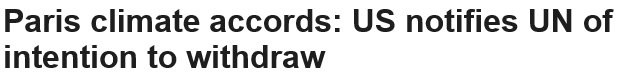【美国正式通知联合国意图退出巴黎气候协议】美国已正式通知联合国意图退出巴黎气候协议,开启了为期一年的退出进程。巴黎协议汇集了188个国家来共同应对气候变化。