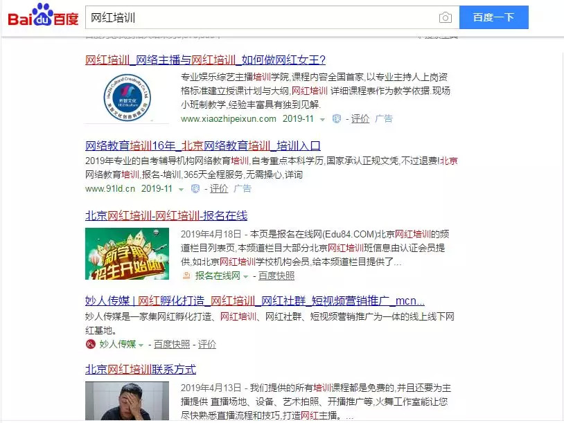 在网上搜索“网红培训”,下面就会出现很多个培训机构。这些网红培训班究竟是如何进行网红培训?培训后的“网红”究竟能否成为大多数人想的那样,可以顺利过上粉丝打赏、直播带货的生活,从而一夜暴富?