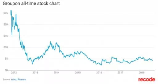截止 2019 年 10 月 29 日,目前 Groupon 股价已跌至 3 美元,Groupon 市值一度高达 160 亿美元,目前仅为 17 亿美元,自 2018 年开始公司高管就在寻求业务出售,阿里或是潜在买家之一。