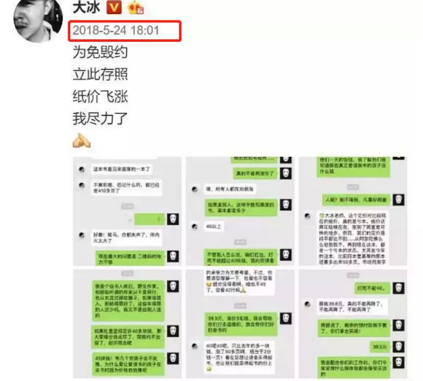 不过,网友保持着最后一点理智,在去年大冰新书发售之前的微博里,找到了相同的截图。