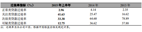 还是从不良贷款的迁徙率说起。下表是2015年招商银行不良贷款的迁徙率信息。