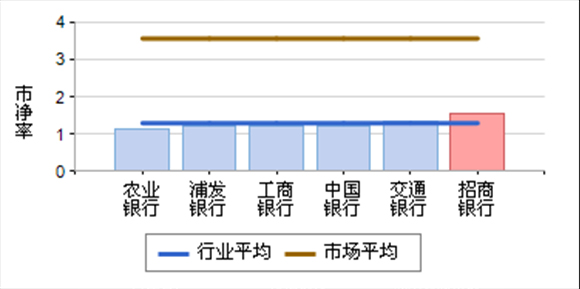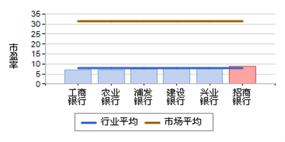 受央行双降的刺激,招商银行8月26日、27日接连大涨,涨幅分别为9.26%、9.57%。按照其27日收盘价17.63元计算,目前PB(市净率)1.34倍,PE(市盈率)7.3倍。这样的估值虽然较当前行业估值稍高,但是大幅低于A股市场整体估值。