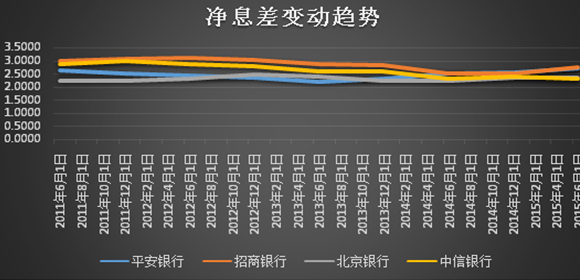 可以看出,2014年中期是个重要转折点。上述已经披露了2105年中报的4家商业银行净息差,均从2014年中期以后出现拐点,或者开始上行,或者下跌趋缓。其中招商银行和平安银行出现了非常明显的回升态势。