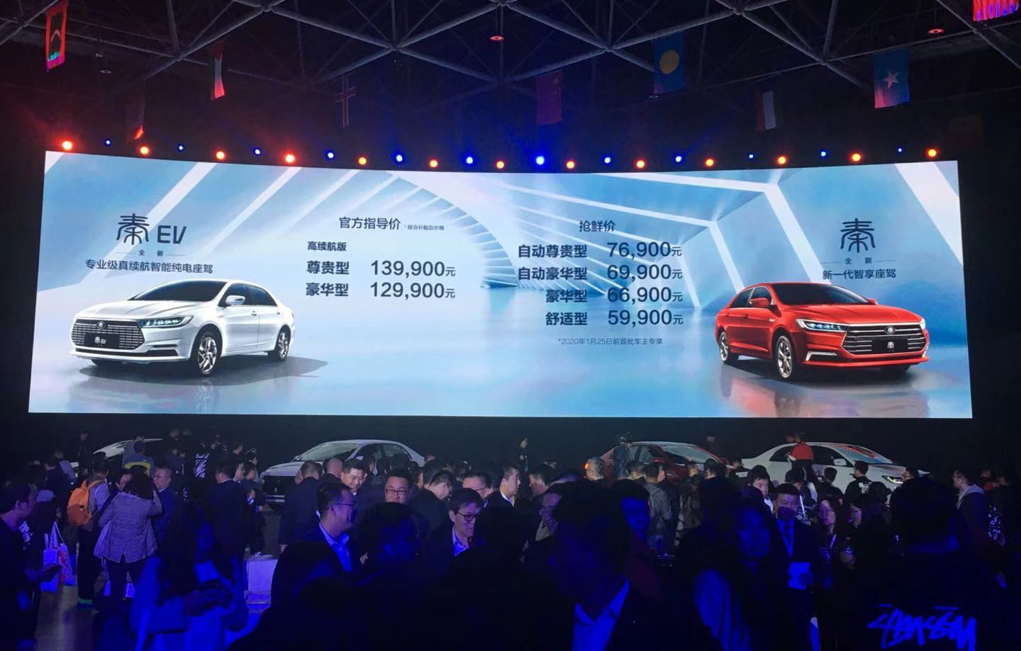 当天,比亚迪全新秦和秦EV宣布上市。其中,燃油版全新秦的官方指导价格区间为6.49—8.19万元。此外,针对首批车主(2020年1月25日之前购买),比亚迪燃油版车型推出了一个“抢鲜价”为5.99-7.69万元。全新秦EV两款高续航版补贴后指导价则分别为12.99万元和13.99万元。