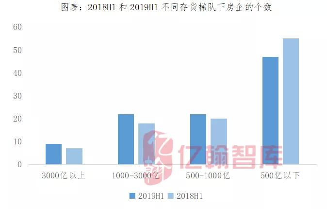存货在1000-3000亿之间的房企有22家,较2018年同期新进4家。1000亿以下的房企有69家,较2018年同期减少6家。