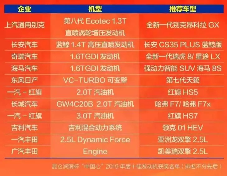 了解汽车行业的人都知道,每年国际上有一个名为“沃德十佳发动机”的排名,来自业内发动机评价最权威的机构。而近日国内也有机构发布了一项“中国心”的十佳发动机榜单,针对的是国内市场上的机型,其中自主品牌占据了半数以上的席位,分别包括长安、奇瑞、海马、一汽-红旗、长城和吉利。
