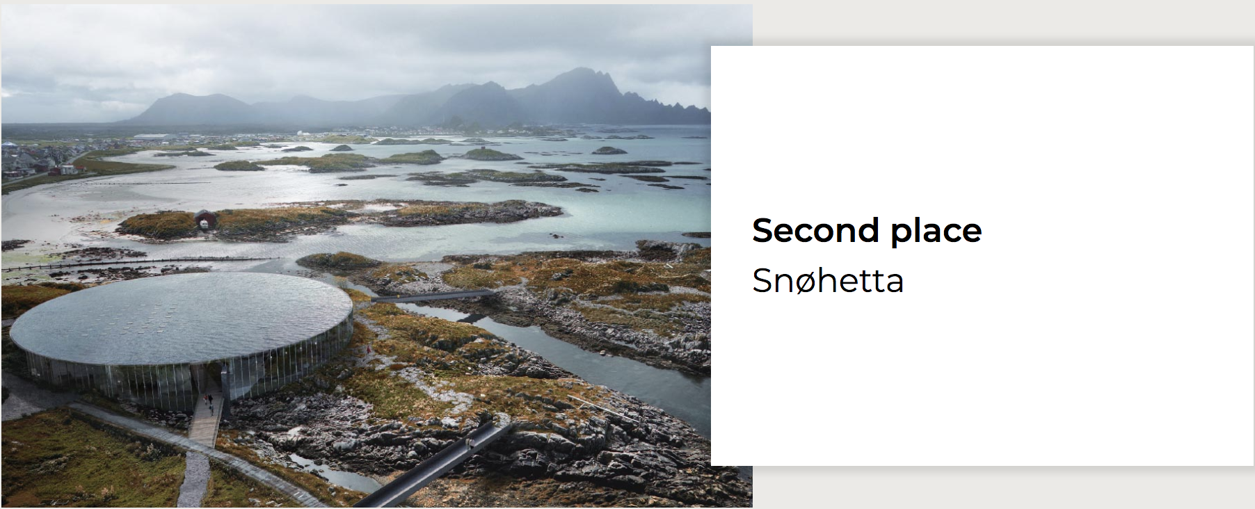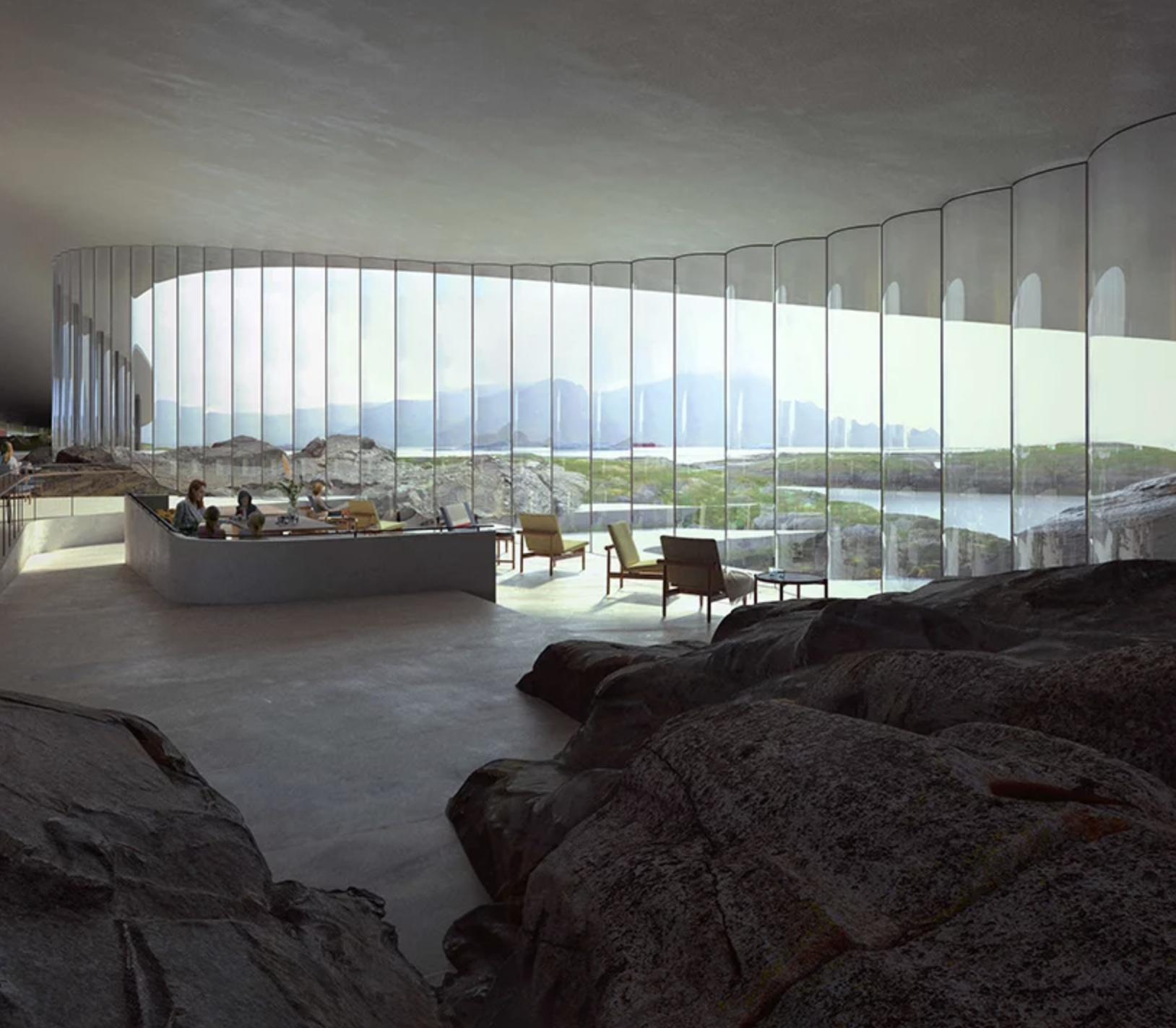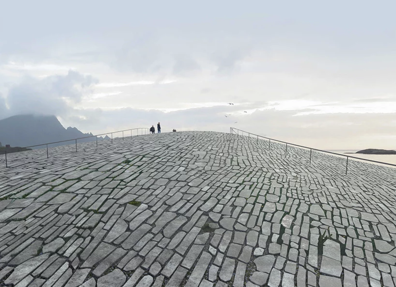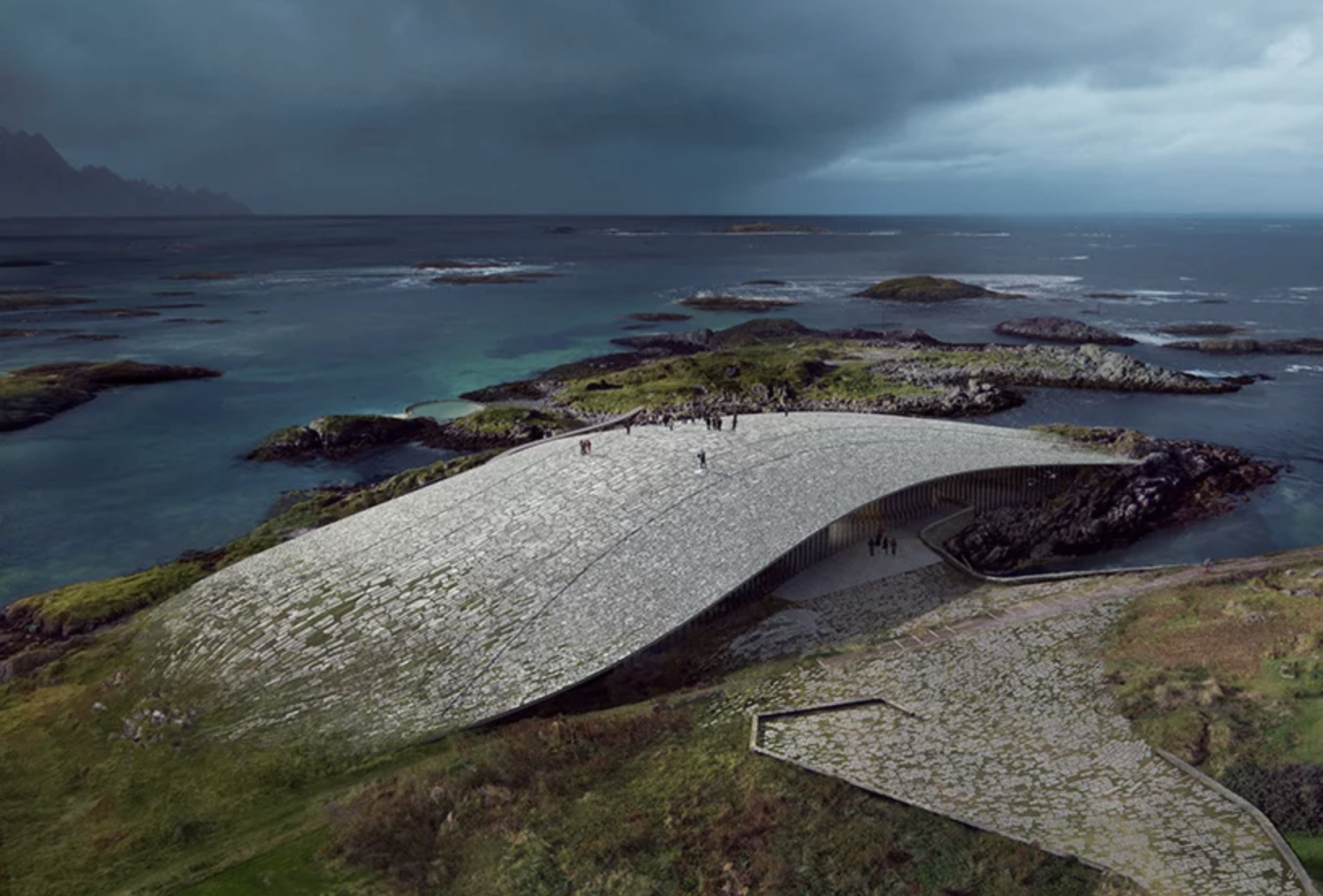 建筑的设计与当地独特的自然景观息息相关。游客能够在屋顶自由行走,并欣赏到鲜少受到污染的海水、山川、午夜的阳光甚至极光。