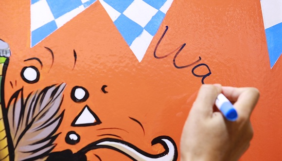 涂鸦墙不仅对颜料有效,还不惧怕各种粘贴物,因为胶水很难附着在这种墙面上。