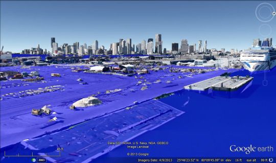 下面这张假想图可以看出,如果海平面上升1米,迈阿密将会是什么样子。