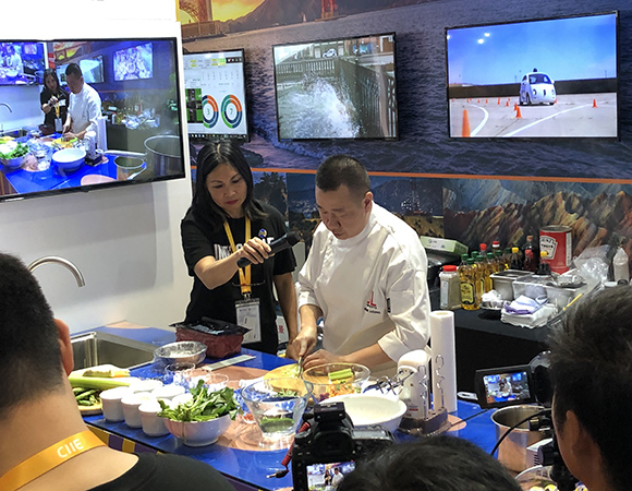 11月6日,本届进博会首个公开日,Impossible Foods展位上还有明星主厨梁子庚表演用人造肉制作狮子头和烧麦。