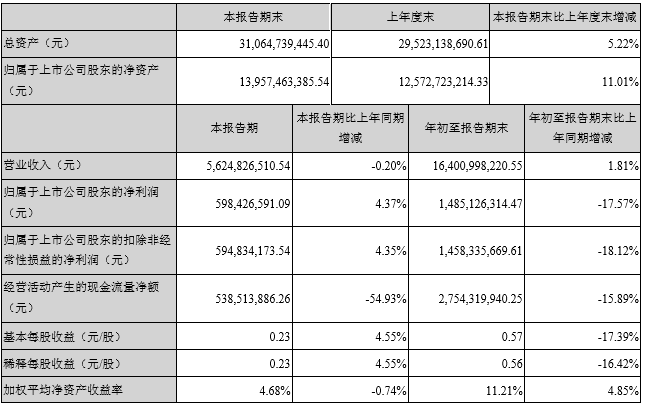 经营性现金流量净额同比减少15.89%