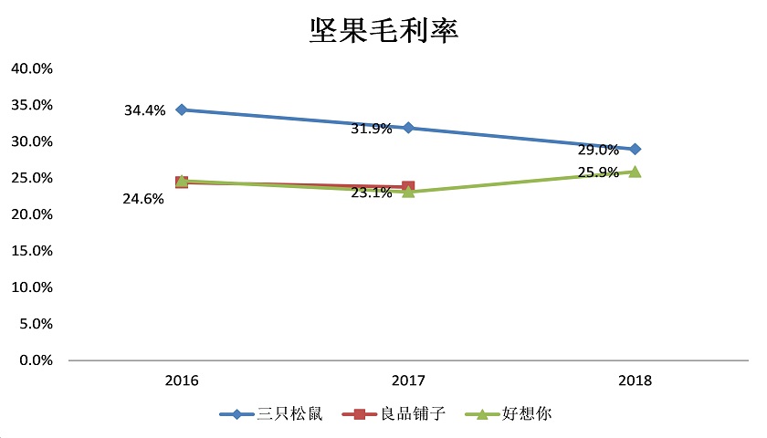 此外,三只松鼠代工厂生产的原材料品质也让人疑虑。由于公司给代工厂的费用相对较低,而代工厂也要保留一部分合理利润,所以代工厂对原材料的投入也会相应减少。以坚果为例,三只松鼠的毛利率显著高于好想你和良品铺子。而这三者的售价基本相同,说明三只松鼠的坚果成本远低于另外两家。
