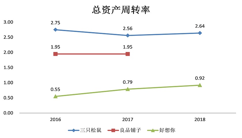 大力推动平台使得三只松鼠获得了极高的周转效率。三只松鼠总资产周转率平均在2.5倍以上,和三只松鼠规模和业态最为相似的良品铺子总资产周转率不足2倍。这主要是因为良品铺子有超过2000家门店,一半的销售收入来自线下店铺。而三只松鼠的线下店铺刚刚开始设立,目前不足200家,线上收入占绝大多数。2018年数据显示,三只松鼠在天猫和京东两个平台上的销售额占全部销售的82%。而线下门店的资产周转本来就慢于线上,所以良品铺子的周转率低于三只松鼠。好想你是这三者中唯一采用重资产模式经营的,有大量的固定资产,所以周转率最低。