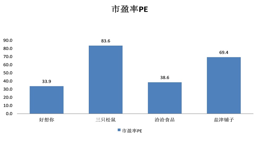 另一方面,三只松鼠的估值仍处在高位,其静态市盈率高达83.6倍。同样是休闲零食的好想你(002582.SZ)和恰恰食品(002557.SZ)的市盈率分别只有33.9倍和38.6倍。