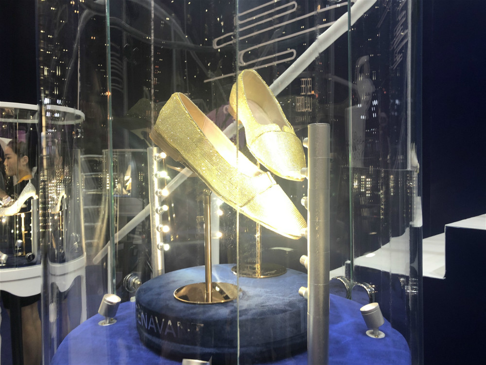 2017年由著名鞋履设计师周仰杰(Jimmy Choo)及其义子洪大钧(Reggie Hung)共同创立的伦敦鞋履品牌纪娜梵已经是第二次进驻进博会。继上次展出了价值“3000万钻石鞋”后,它这次又带来了新 “鞋王”——一双香饼色的平底鞋。