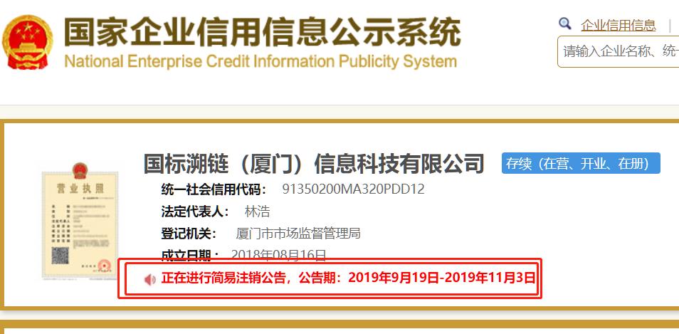 如今一年过去,当代集团的上述业务进展如何?界面新闻记者查阅国家企业信用信息公示系统发现,国标溯链正在进行简易注销公告,公告期为:2019年9月19日-2019年11月03日。