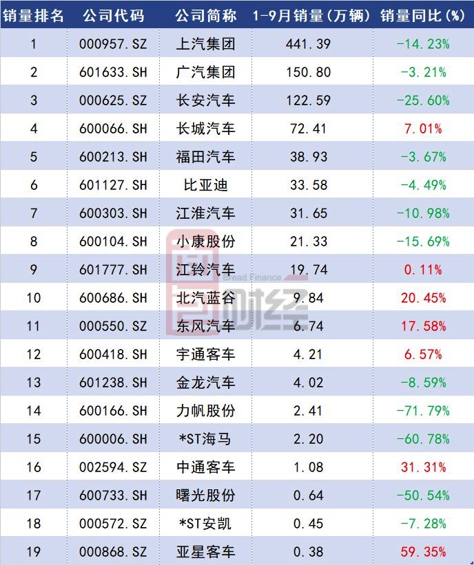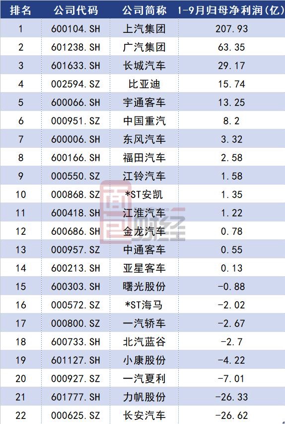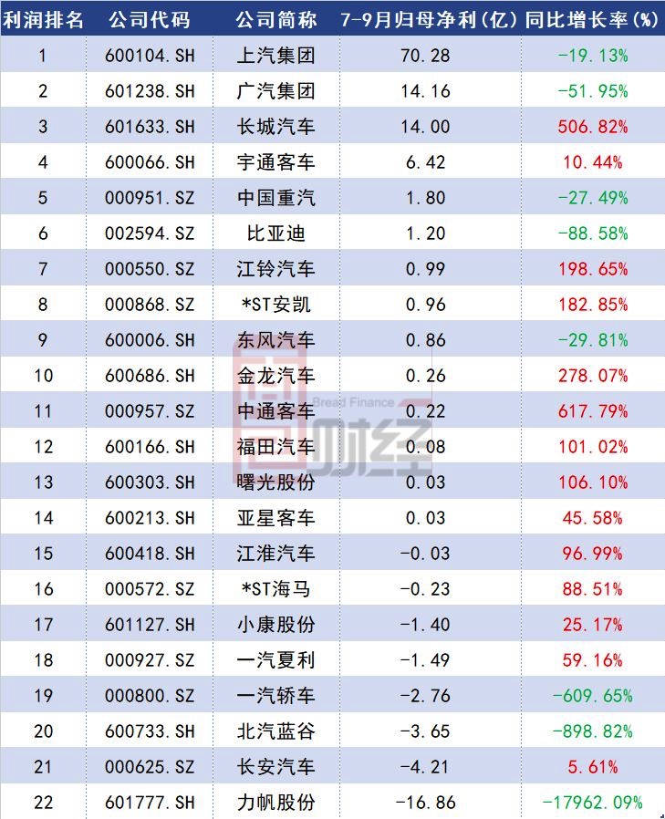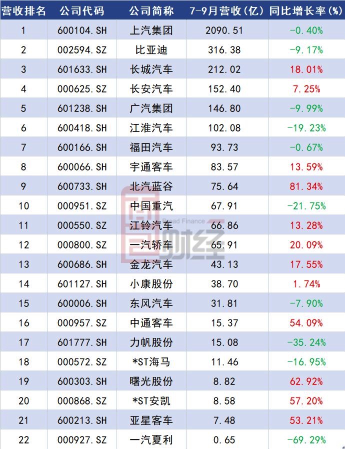 虽然行业素有“金九银十”的说法,但就单季数据来看,“金九”过后,在上年同期基数较低的情况下,第三季度仍有10家车企营收下滑;6家车企营收净利双降,其中包括上汽集团和广汽集团。