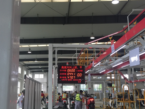 从指示牌可以看到,小牛工厂目前每天的目标是600台。从8月17日完成众筹重新投产之后,已经生产了4707台。