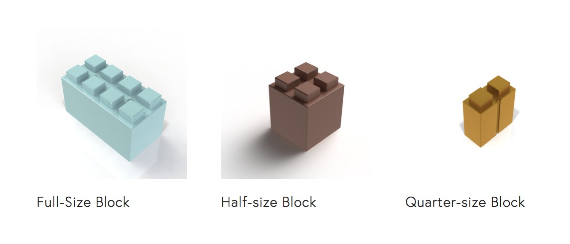 不同的是,乐高是玩具,而EverBlock更像是一种工具,你可以利用这些塑料块儿搭建全功能的家具和其他结构。EverBlock共有14种颜色、3种尺寸:1英尺(30厘米)、6英寸(15厘米)、3英寸(7厘米),重量从2磅(约1千克)到0.25磅(0.11千克)不等。