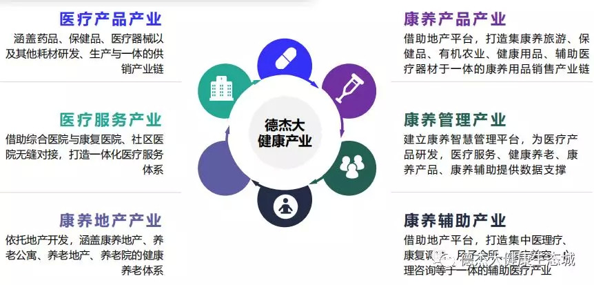 当前,在中国由于医疗资源匮乏、全面二孩政策、城市化推进和人口迁移等多重社会因素加大医疗市场的供给缺口,加之现在中国老龄化处于快速上升时期,又进一步助推了供给缺口扩大。随着人们对生活质量与身体健康的日益重视,大健康产业顺势走入人们视线。2017年中国开始发力大健康产业,先后推出《“健康中国2030”规划纲要》等相关政策,助力大健康产业的蓬勃发展。作为十九大精神的开局之年,2018年更是以加强和改善民生,成为大力发展健康养老这一民生重要内容的“大健康元年”。在这样的背景下,德杰集团坚持“跨区域、多业态”的战略布局:深耕地产,不断探索养老地产、教育地产等创新发展模式;率先拓展医疗卫生产业,大力兴建医院、医疗康复综合体等医疗服务项目;结合建筑、物业、园林等产业,力求通过多元优势效应,践行国家战略布局,加码大健康产业。