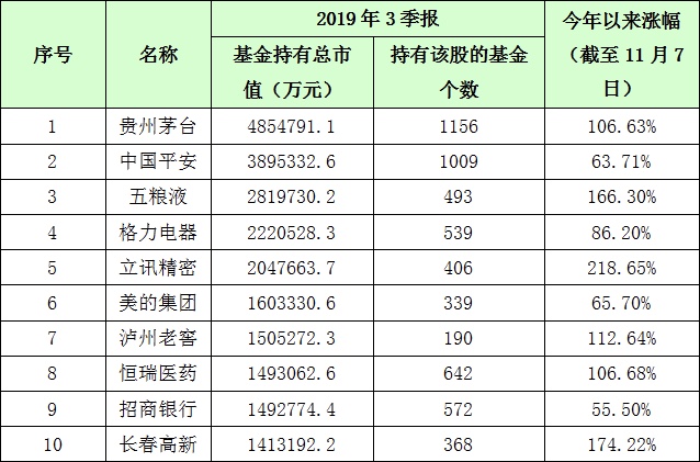 只从一个代表股票中就能看出来,五粮液——这只2019年三季报公募基金第三大重仓股,在2019年前10个月暴涨了160%以上。