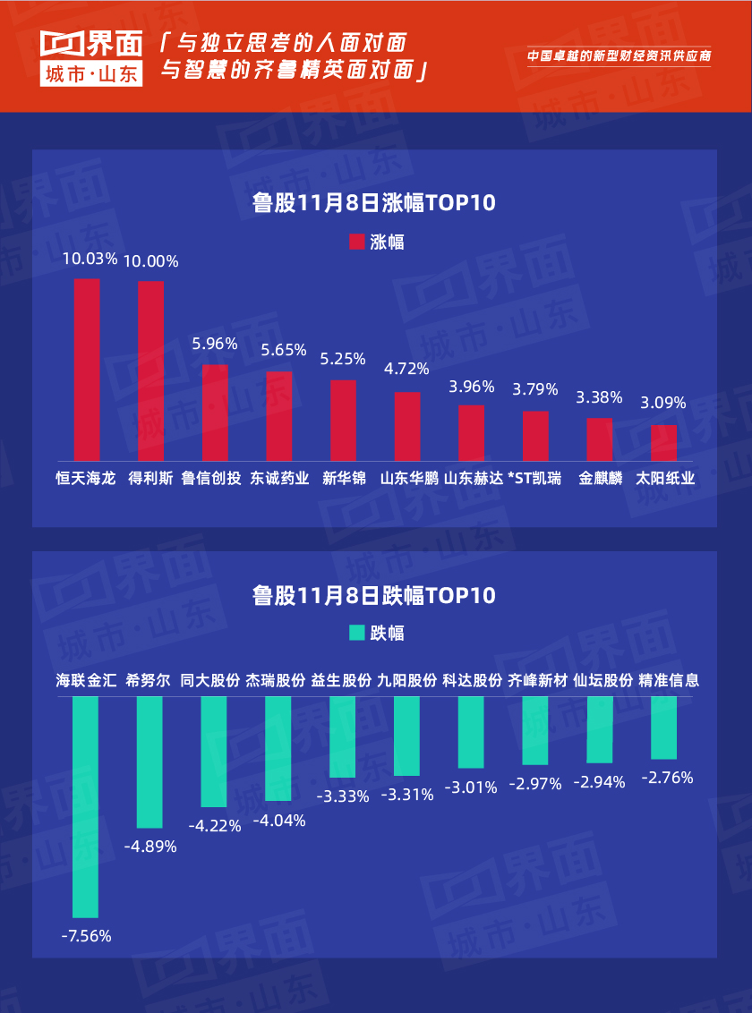 11月8日,山东省内沪深股票有67只个股上涨,127只下跌,12只与上一个交易日收盘价持平;