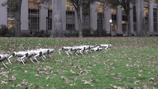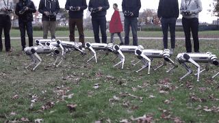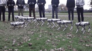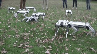 中场休息,排好队做个操吧,四足机器人可以灵活地上下左右活动,向我们展示其超高的灵活度。