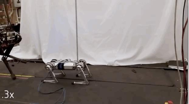 参加足球赛的队员,是MIT今年刚刚推出的迷你猎豹机器人。别看这款小型四足机器人样子萌萌的,实际上大有来头!它可是世界首个会后空翻的四足机器人,这个动作连波士顿的机器狗都还没学会呢!