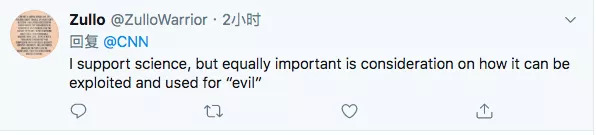 有人担心人类的安全:“我支持科学,但同样重要的是,应该考虑它是否会被用来作恶“。