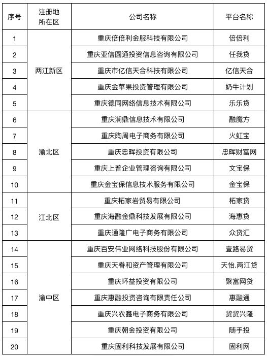 公告表示,现根据工作安排,将重庆市29家已报告结清P2P网贷业务、拟主动退出的机构进行公示,公示期为15日,拟退出机构在正常公示结束后,根据退出承诺办理注销登记或进行名称、经营范围变更,退出P2P网贷行业。同时,对该市其他机构开展的P2P网贷业务一并予以取缔,任何机构未经许可不得开展P2P网贷业务。