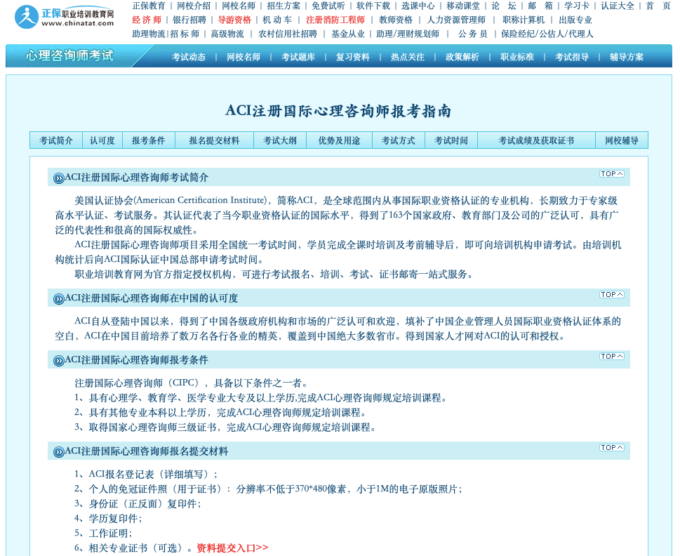 在正保远程旗下的职业培训教育网,仍有对ACI注册国际心理咨询师考试的介绍,并称该证书获得163个国家政府、教育部门及公司的认可。据该页面介绍,其相关课程包括理论和操作技能两部分共120课时,售价为3600元。