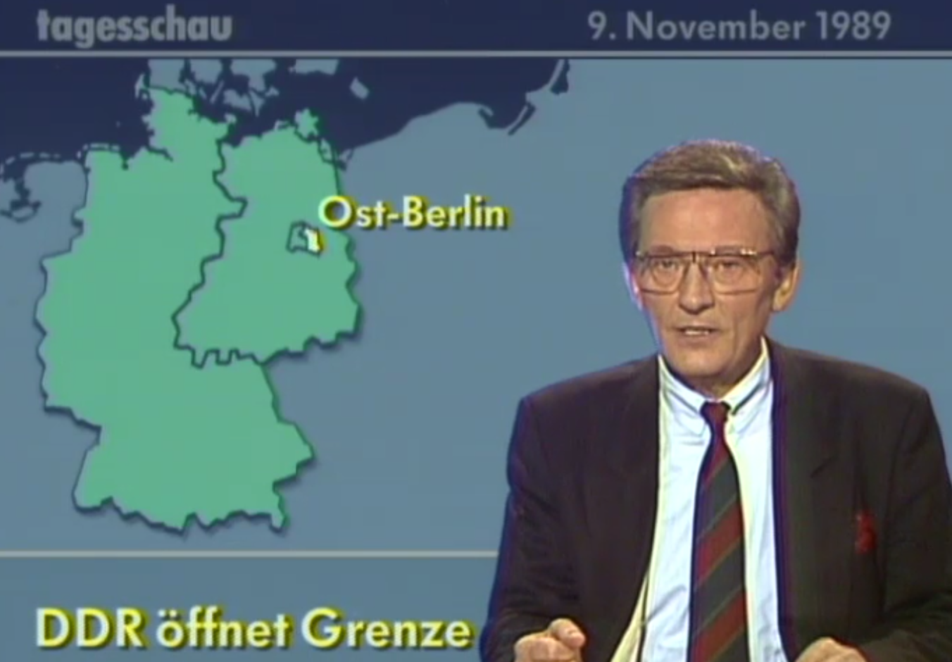 时间来到11月9日19时,距离柏林墙倒塌还剩4小时。东德中央政治局委员沙博夫斯基召开记者发布会,宣布政府将再次放松对居民的旅行限制。在一套官方性说辞完毕之后,一位记者提问打破了沉默:“(新旅行条例)何时生效?现在吗?”