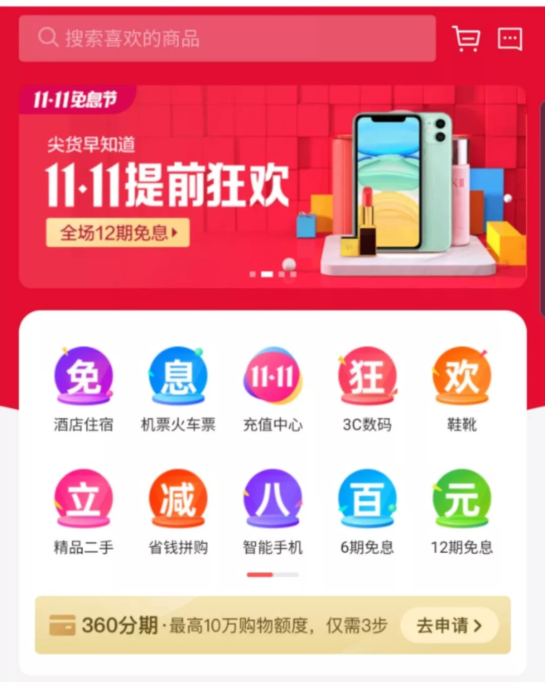 同时,免息也是花呗、白条在双十一期间的重要武器。京东、天猫都推出了专门的24期免息购物,以手机、家电等单价高的产品居多。在这一天到来之前,电商们想尽了各种办法要让用户有钱花,敢花钱。