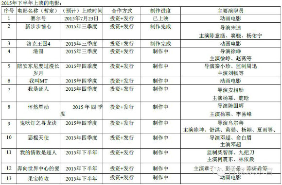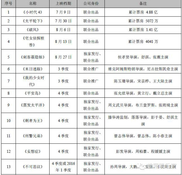 华谊兄弟2015下半年片单