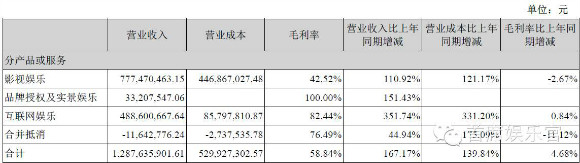 半年报显示,互联网娱乐上半年营收4.89亿元,同比增长352%。王中军日前曾透露,互联网娱乐板块很有可能成为今年华谊兄弟最盈利的板块。